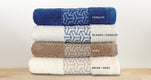 Toalla de 440 gr/m2 de rizo americano con barra de jacquard.