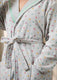 Albornoz fabricado en Terciopelo para hombre con capucha y líneas verticales de colores.