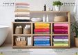 Rizo Americano en su diseño. La serie engloba los 4 componentes principales de baño para que no te falte ninguno en tu casa: Tocador (paquete de 4 piezas), Lavabo (paquete de 4 piezas),  Tapete (paquete de 4 piezas) , Ducha (paquete de 2 piezas) y Sábana (paquete de 2 piezas).